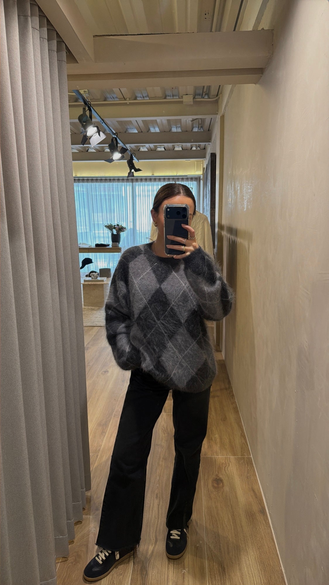 A statement knit crafted from brushed cashmere with a refined jacquard texture. Soft to the touch with a subtle depth and warmth, this oversized sweater is designed for effortless layering and elevated everyday wear. Luxurious, relaxed, and timeless.
